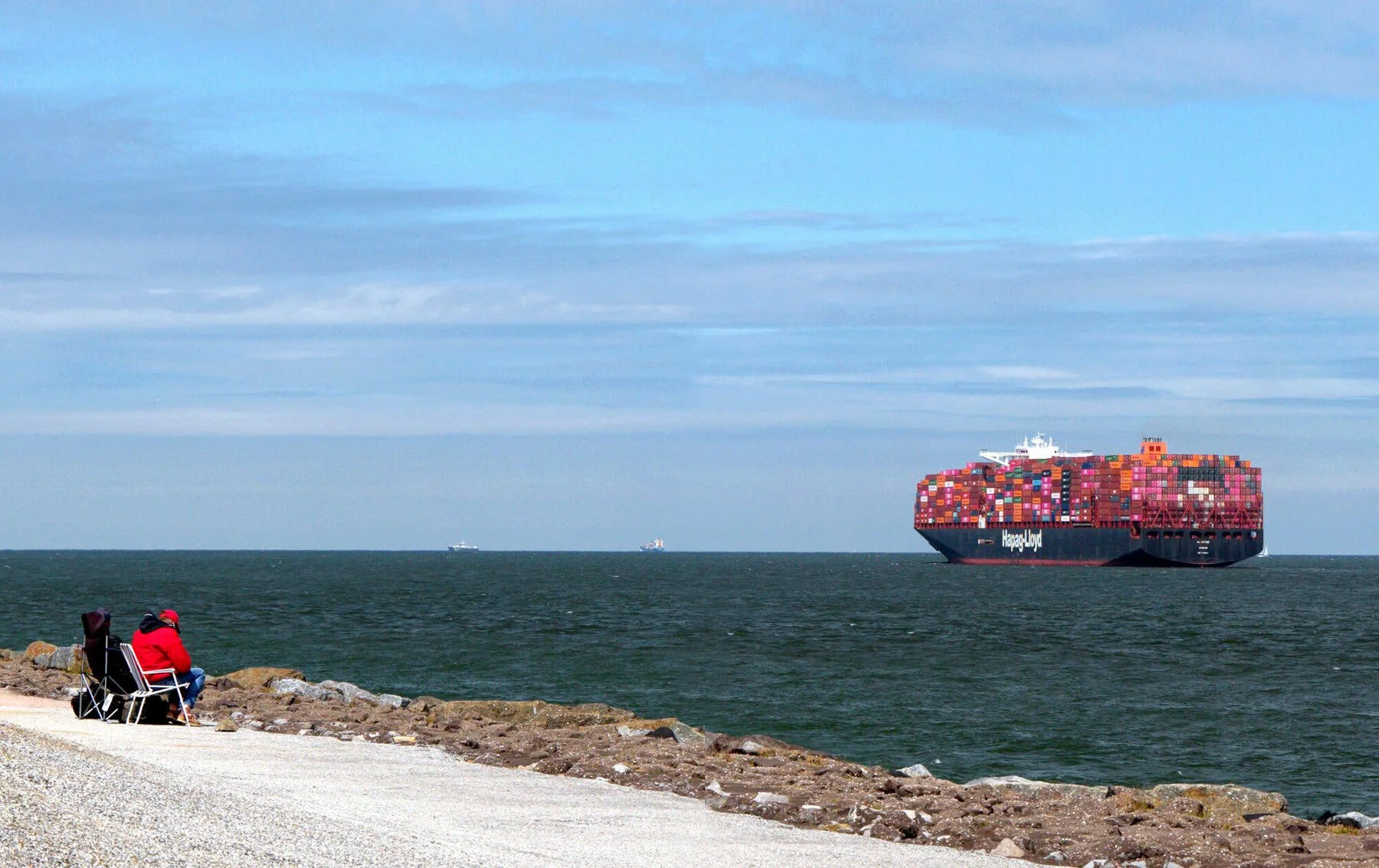 Kunstnerens lek med format og skalering vises også i et sirkulært videomøbel og i hans to-kanals panoramavisning av filmen “Rotterdam”. Her ser vi gigantiske lasteskip gli forbi, sammen med bilder av det sublime industrielle landskapet som utgjør Europas største containerhavn i Rotterdam.